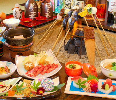伝統と極上に舌鼓◆平家お狩場焼+A5ランクとちぎ和牛「匠」~囲炉裏...